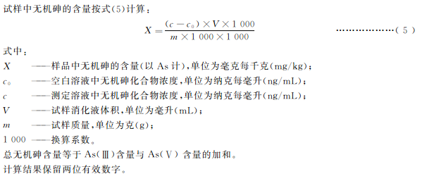 本標準第一篇規(guī)定了食品中總砷的測定方法。本標準第二篇規(guī)定了食品中無機砷含量測定的液相色譜-原子熒光光譜法、液相色譜-電感耦合等離子體質譜法。