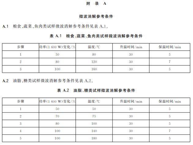 范本標準第一篇規定了食品中總汞的測定方法