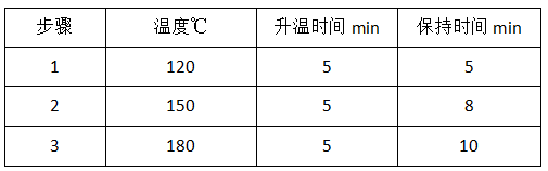 將經(jīng)過烘干并研磨成粉末狀的玉米樣品0.35克準(zhǔn)確稱取至微波消解罐中,加入8毫升 硝酸和2毫升 高氯酸溶液,封蓋后放入微波消解儀內(nèi),同時(shí)進(jìn)行兩份空白對(duì)照。按以下程序進(jìn)行密閉消解。消解完成后,將消解罐冷卻至室溫,取出后將消化液轉(zhuǎn)移到25毫升容量瓶中,用超純水稀釋至刻度,備用。
